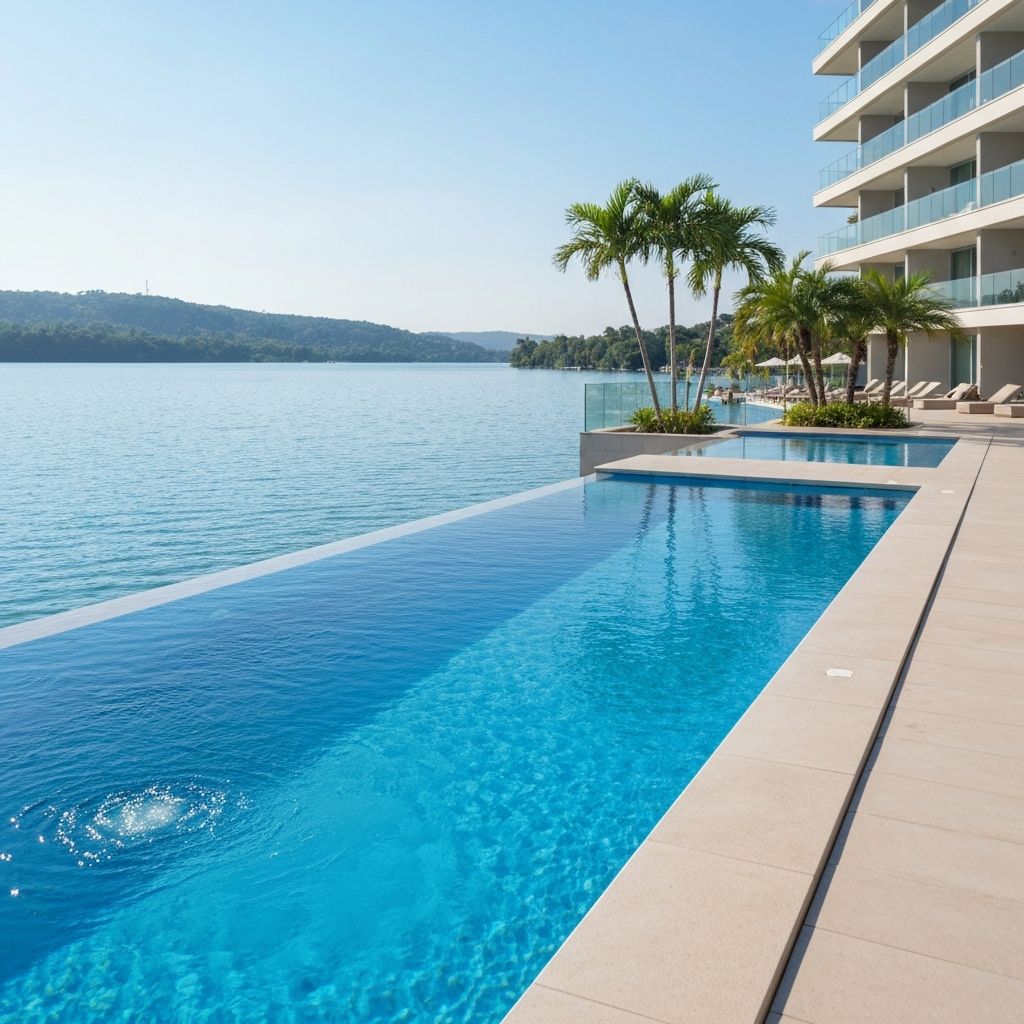 We designed a main residence with a connected guest house, unified by covered walkways and shared outdoor living spaces. Floor-to-ceiling windows capture panoramic lake views, while careful site planning preserved mature trees.